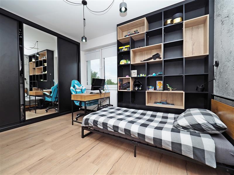 Mieszkanie o powierzchni 86,75 m2 o bardzo przemyślanym rozkładzie. Oddzielono tu strefę sypialnianą od dziennej, dzięki czemu każdy z domowników ma zapewnioną intymność i poczuje się, jak w domu.