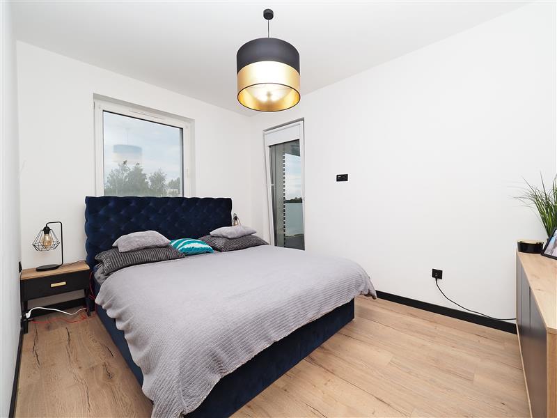 Na całościowy metraż mieszkania składa się 5 pokoi, w tym salon z aneksem kuchennym (26,03 m2), 4 pokoje (11,62 m2, 10,59 m2, 9,62 m2, 9,47 m2), korytarz (12,88 m2), łazienka (5,24 m2) i wc (1,30 m2). Z salonu wyjście na duży, słoneczny taras o powierzchni 12,98 m2, usytuowany od południowo-wschodniej strony.