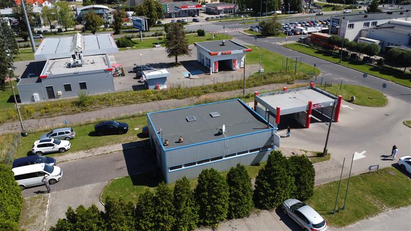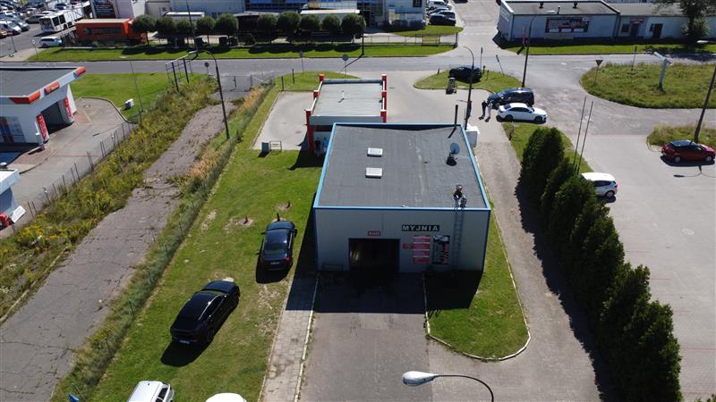 Działka zabudowana dwoma budynkami: tj. bezdotykową myjnią ręczną dwustanowiskową oraz budynkiem o charakterze usługowym w branży motoryzacyjnej.