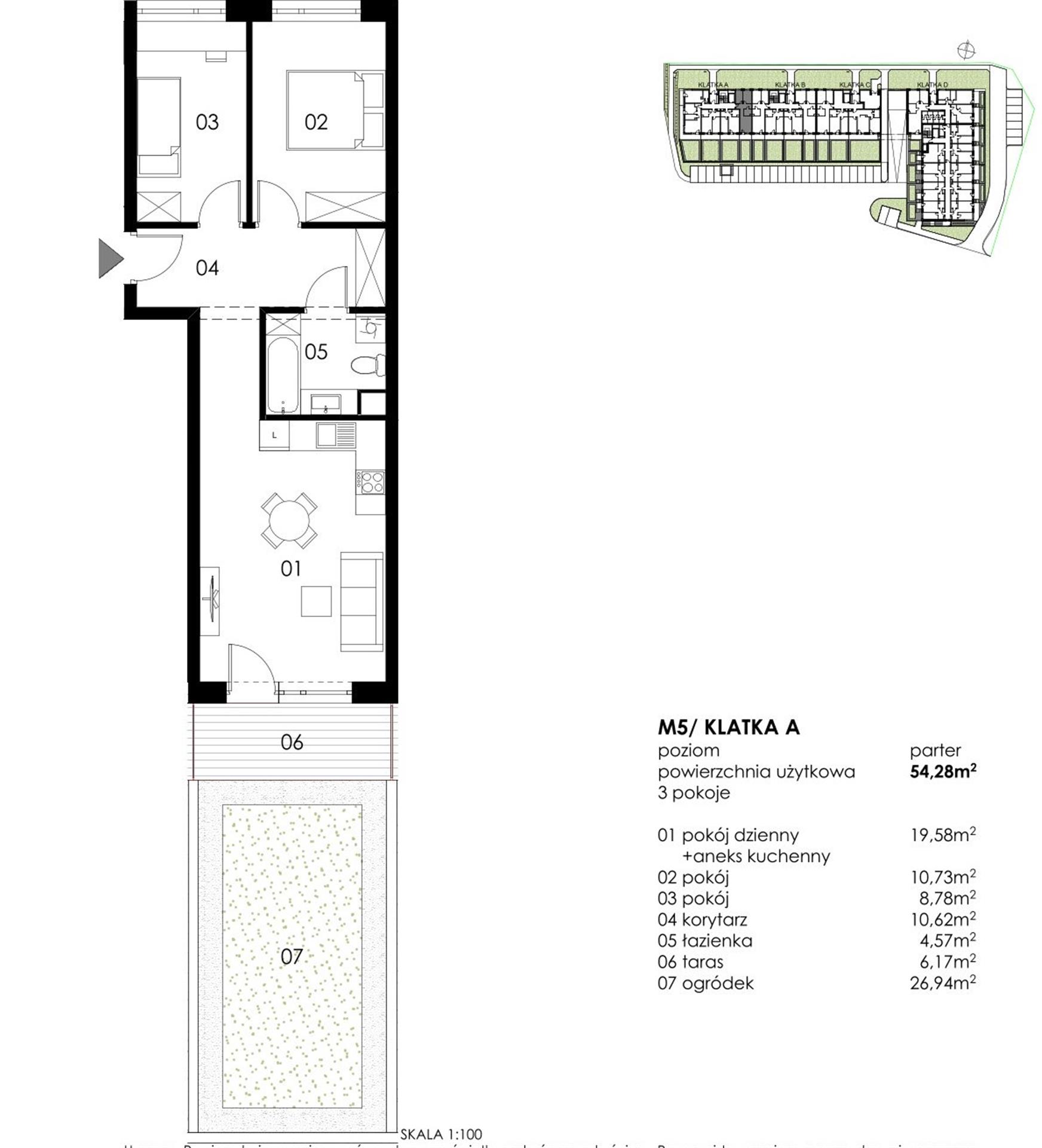 Ta oferta dotyczy mieszkania 3 - pokojowego na parterze o powierzchni 54,28m2 z ogródkiem w cenie 13 500zł, którą należy doliczyć do ceny mieszkania co daje razem: 447 740zł brutto.