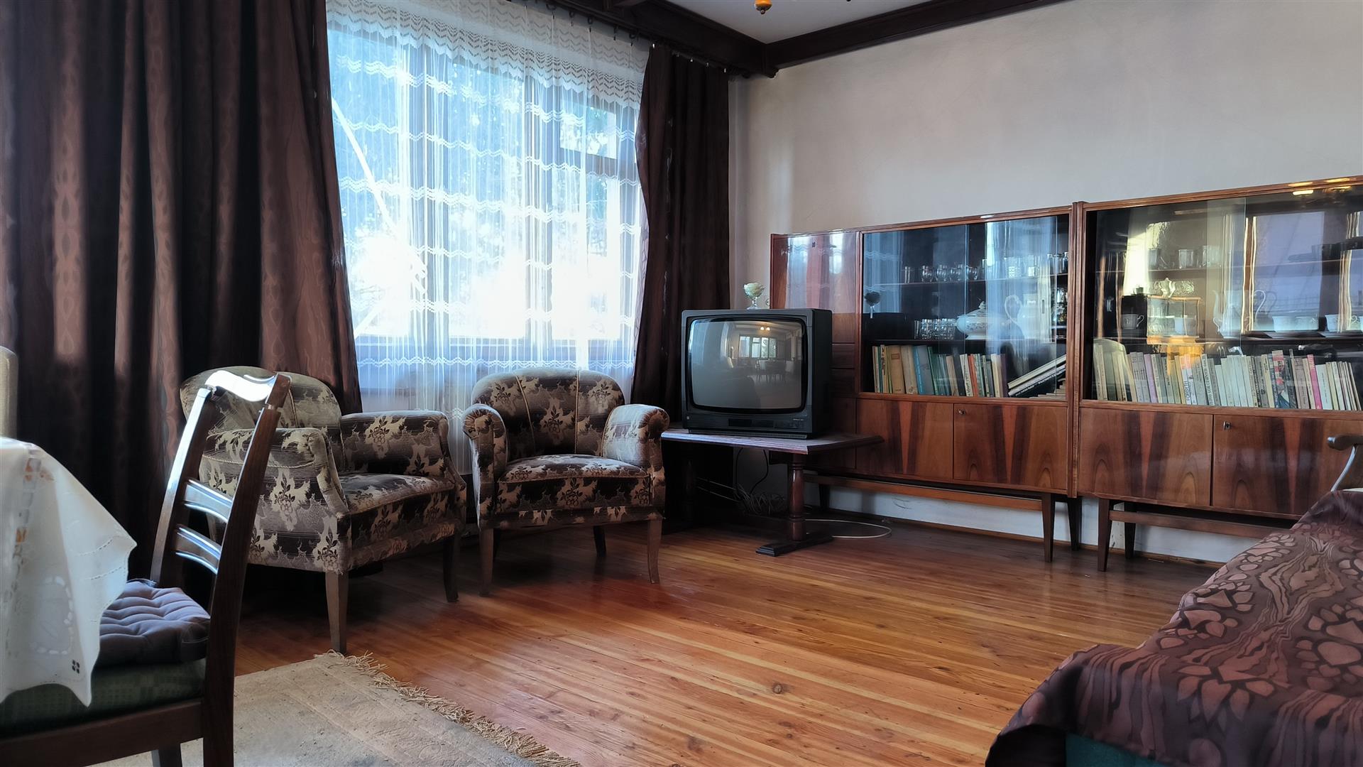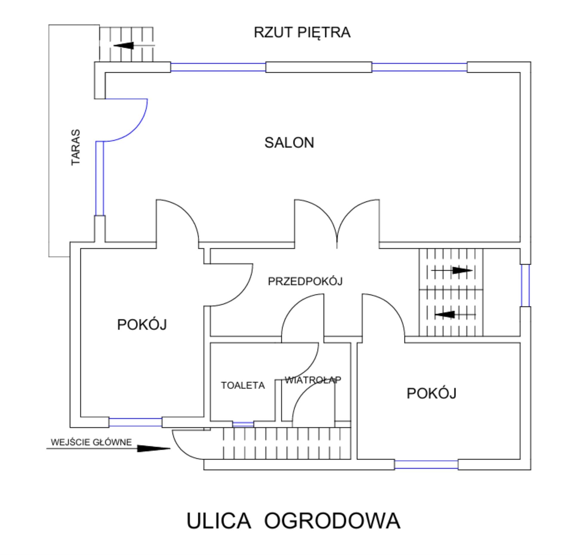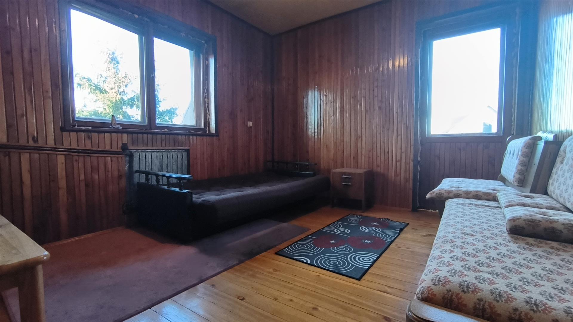 Na parterze znajduje się przestronny salon z dużą ilością światła dziennego o powierzchni prawie 30 m2 i wyjściem na taras, dwa mniejsze pokoje o powierzchni 8,10 m2 i 8,60 m2, toaleta 1,6 m2, przedpokój i wiatrołap. Podłogi pokryte deskami.