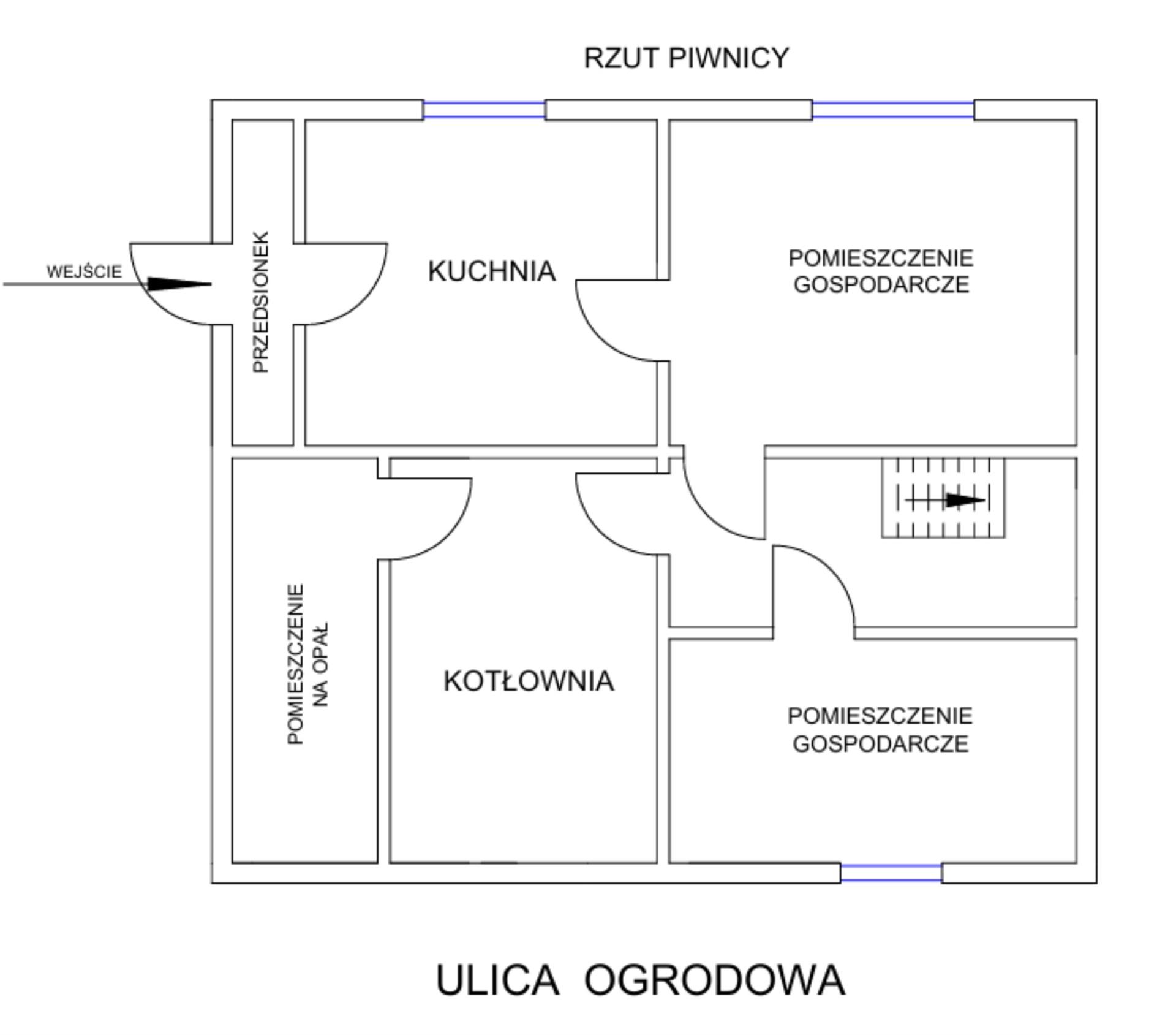 Piwnica składa się z dwóch pomieszczeń gospodarczych, kuchni z piecem kaflowym, kotłowni z pomieszczeniem na opału.
