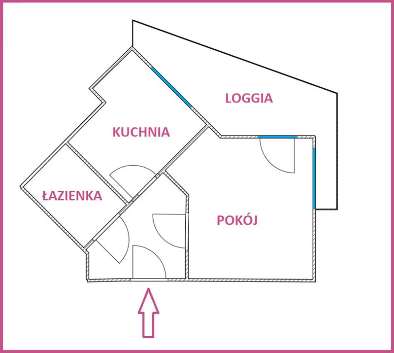 Mieszkanie o powierzchni 35,79 m2, składające się z przedpokoju (5,27 m2), ustawnego salonu (17,98 m2) z wyjściem na słoneczną loggię, osobnej, dużej kuchni (8,85 m2) oraz łazienki (3,69 m2). Pierwotnie wejście do salonu było z przedpokoju, ale obecnie właściciele zrobili je z kuchni. Aktualnie wejście do salonu jest z kuchni, ale pierwotnie było z przedpokoju. Istnieje możliwość przywrócenia stanu poprzedniego.