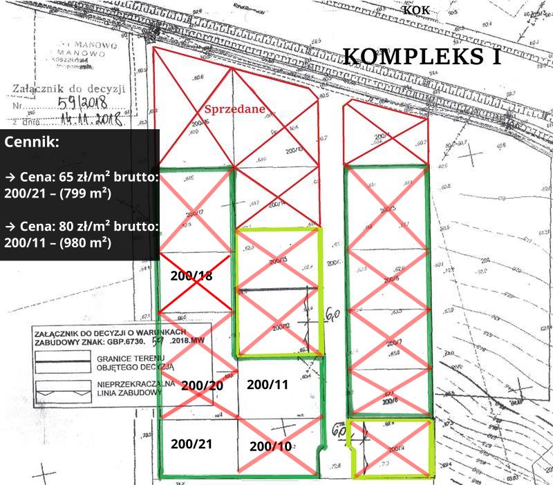 Możliwość zakupu pojedynczych wymienionych działek w cenie 65 i 80 zł za 1 m2 brutto.
