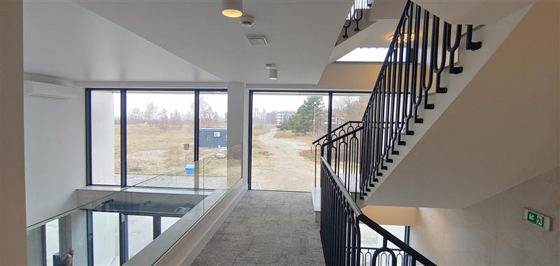 Ekspozycja wystawy okiennej na południowy zachód. Widok na jezioro Jamno.