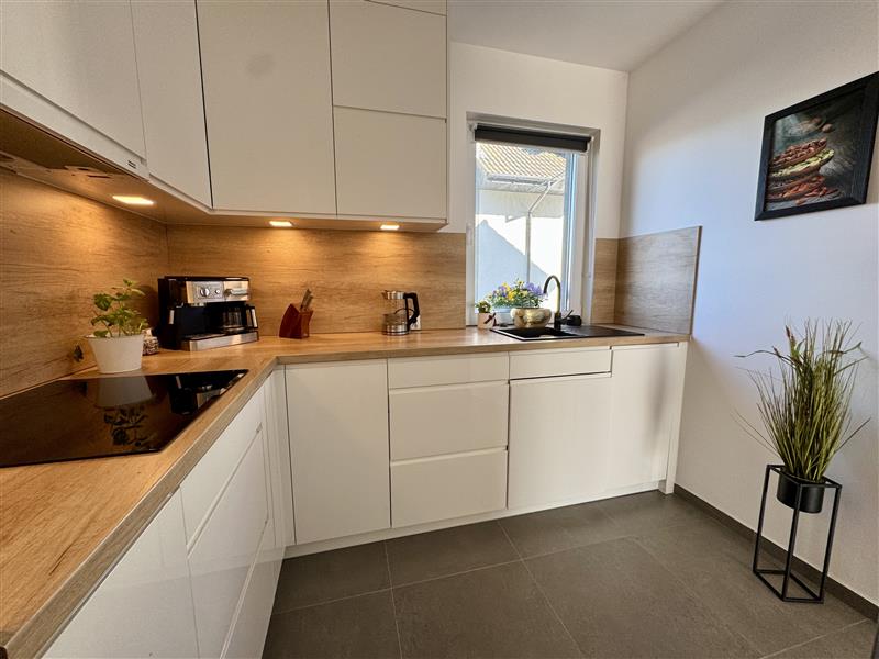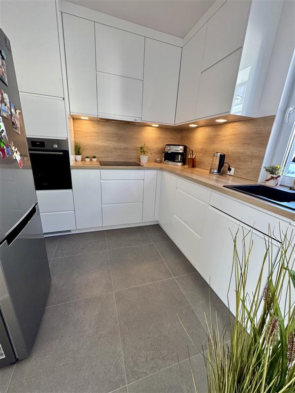 Oddzielna kuchnia (7,23m2) wyposażona w nowoczesne meble w zabudowie, które zapewniają dużo miejsca do przechowywania. Funkcjonalny układ oraz klasyczne wykończenie sprawiają, że kuchnia jest zarówno estetyczna, jak i wygodna w codziennym użytkowaniu. W skład wyposażenia wchodzi niezbędny sprzęt AGD (płyta grzewcza, piekarnik, lodówka, zmywarka oraz okap). Dzięki obecności okna wnętrze jest doskonale doświetlone i dobrze wentylowane.