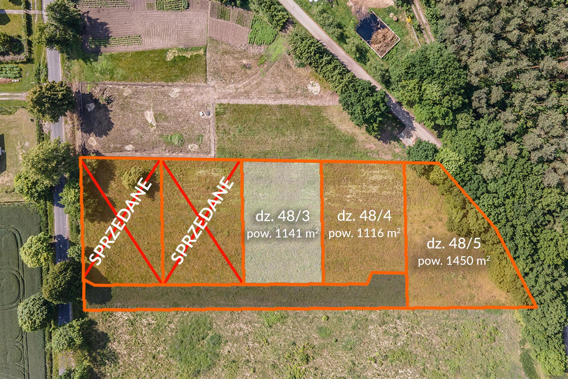 Kompleks 5- działek o pow. od 1116 m2 do 1450 m2 przeznaczonych pod zabudowę mieszkaniową jednorodzinną.