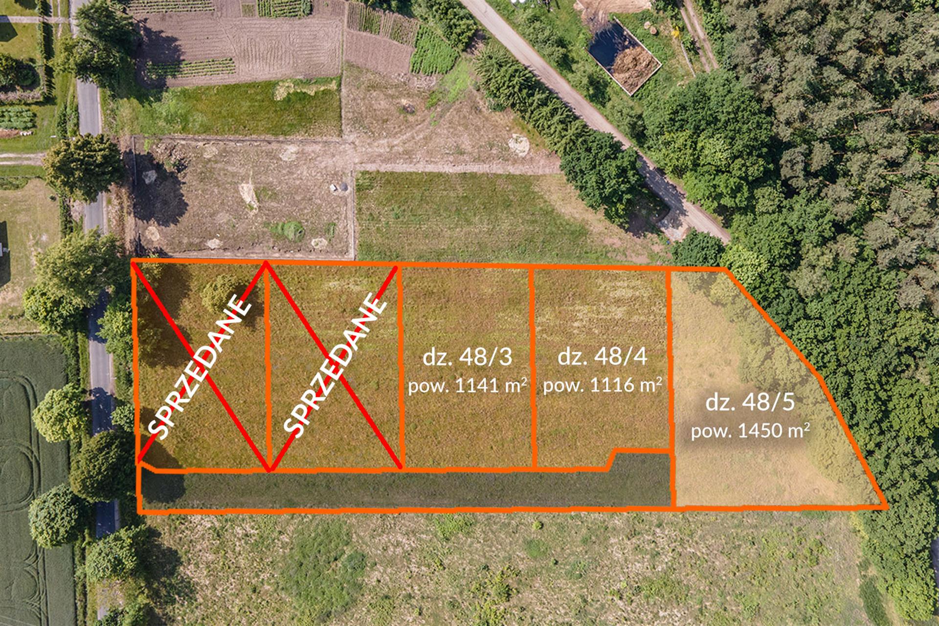 Kompleks 5- działek o pow. od 1116 m2 do 1450 m2 przeznaczonych pod zabudowę mieszkaniową jednorodzinną.