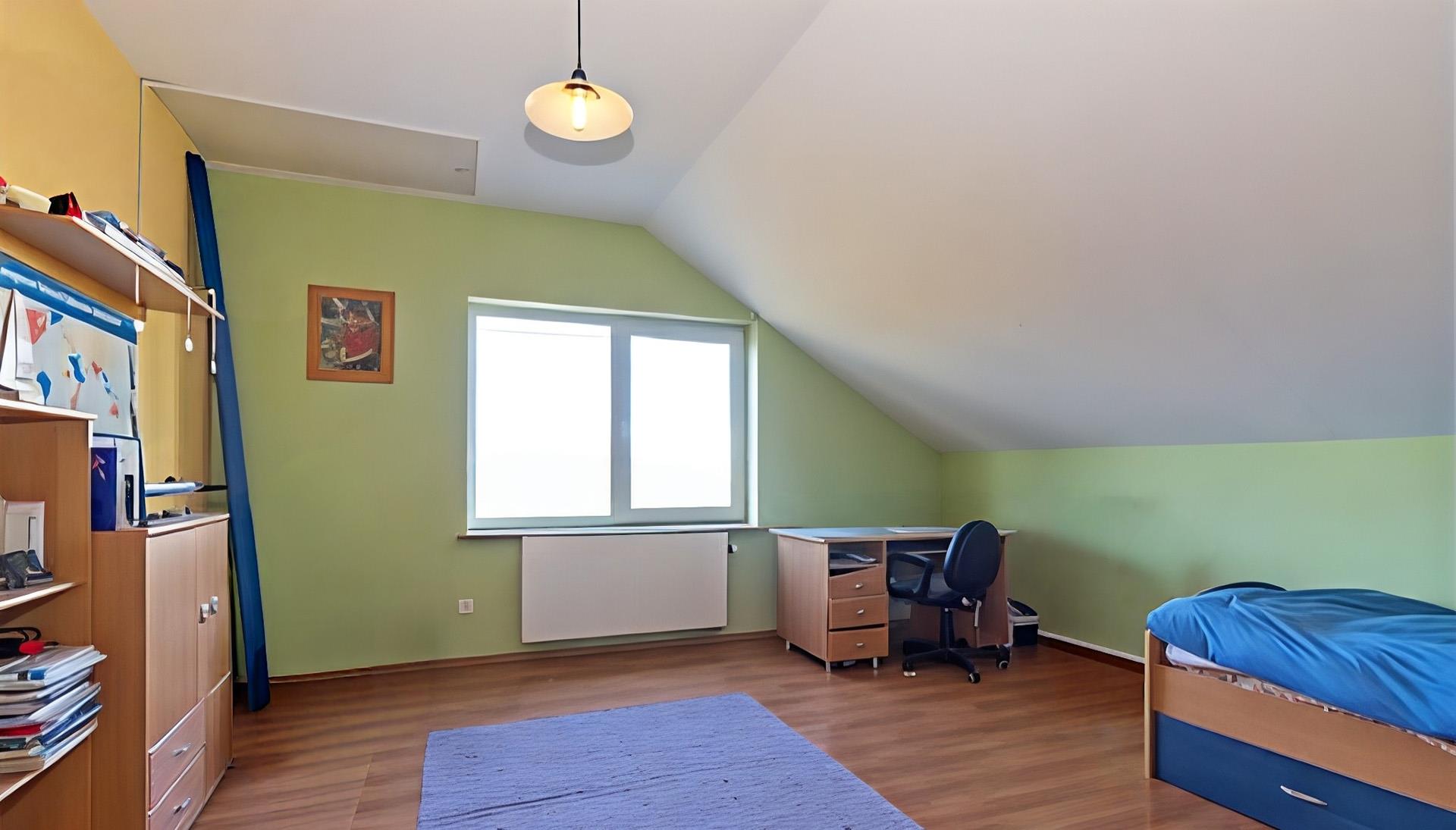 Budynek 2 kondygnacyjny z poddaszem, murowany, ocieplony styropianem, dach pokryty blachą Lindab.