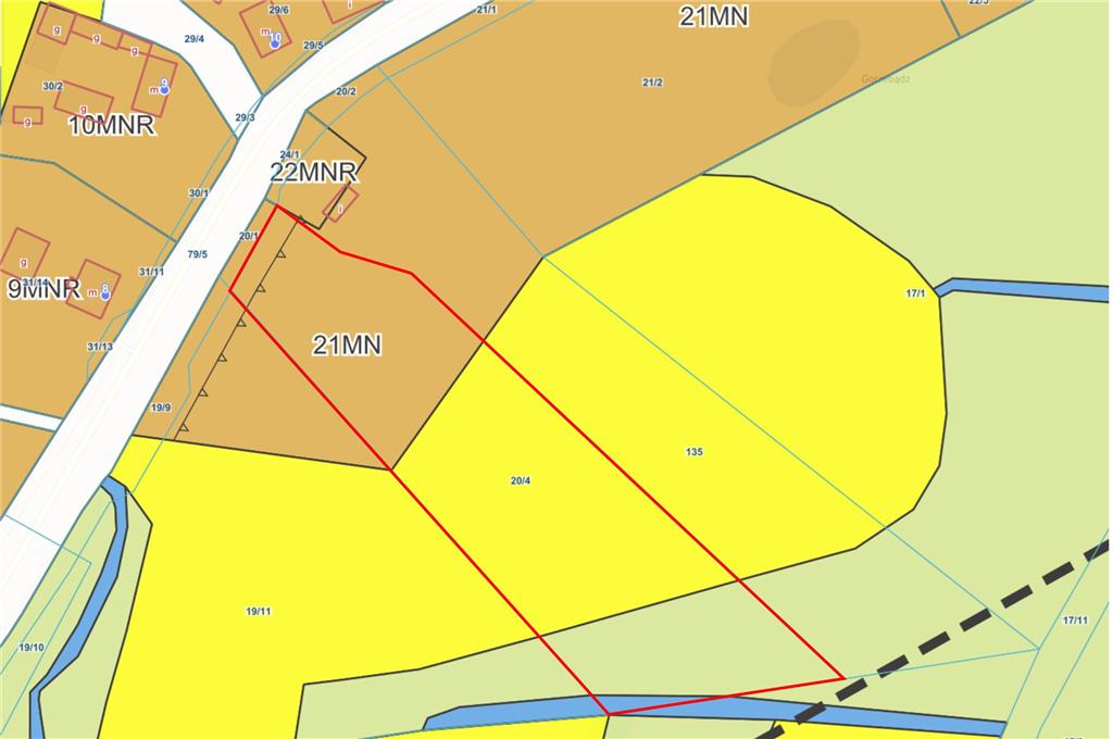 - W aktualnym planie zagospodarowania przestrzennego część terenu (w pasie o szerokości ok. 65 m od drogi) jest oznaczona jest jako tereny zabudowy mieszkaniowej jednorodzinnej, pozostała część działki jest oznaczona jako tereny rolnicze oraz tereny łąk i pastwisk. Istnieje możliwość posadowienia domu na wzgórzu. Teren działki posiada łagodne wzgórze, co stanowi ciekawy element krajobrazu podnoszący jej atrakcyjność.