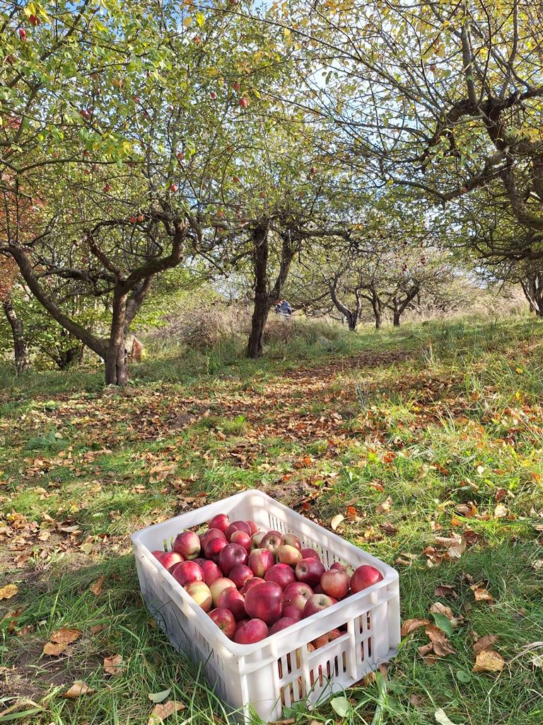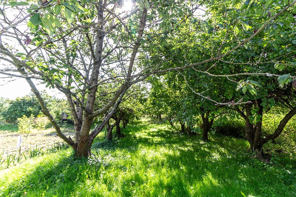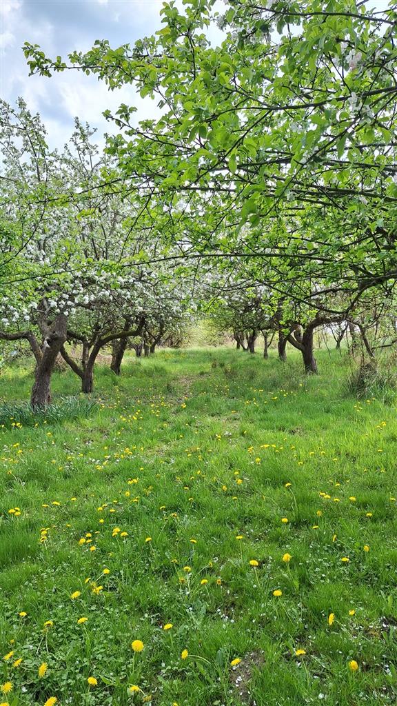 Część działki jest porośnięta starym sadem owocowym założonym w 1970 r. Znajdują się tam dwa rzędy starych odmian jabłoni, m.in. Antonówka, Spartan, Malinówka Oberlandzka, Reneta, Jonatan. Jesienią można zbierać ekologiczne jabłka. Istnieje możliwość wycięcia drzew owocowych, co nie wymaga pozwolenia.