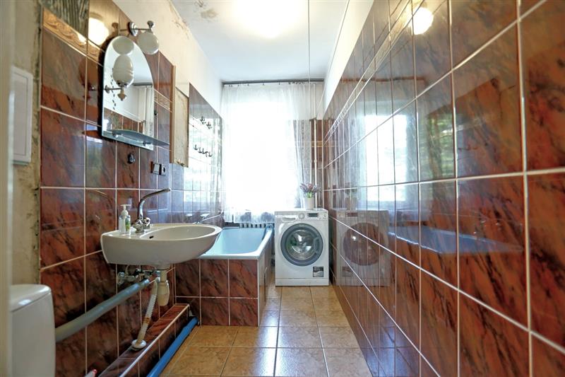 Osobna kuchnia z oknem i łazienka z oknem decydują o praktyczności tego układu mieszkania. Całość dopełnia podwójna piwnica.