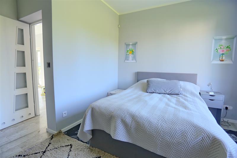 Na posesji znajduje się również mniejszy domek o powierzchni 18,83 m2, w pełni wyposażony w pokój i łazienkę. To świetne rozwiązanie jako domek gościnny, miejsce dla dorosłego dziecka, gabinet do pracy zdalnej czy przestrzeń pod wynajem.