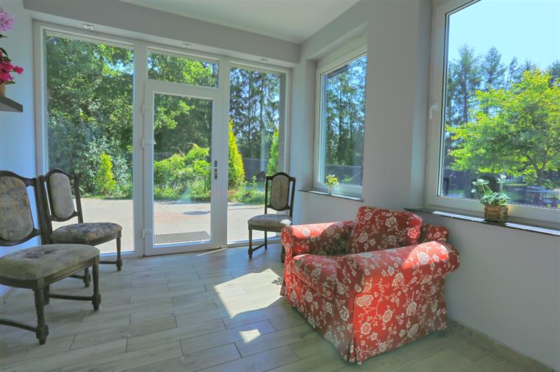 • jasne, przeszklone wejście – idealne na oranżerię lub miejsce na rośliny,