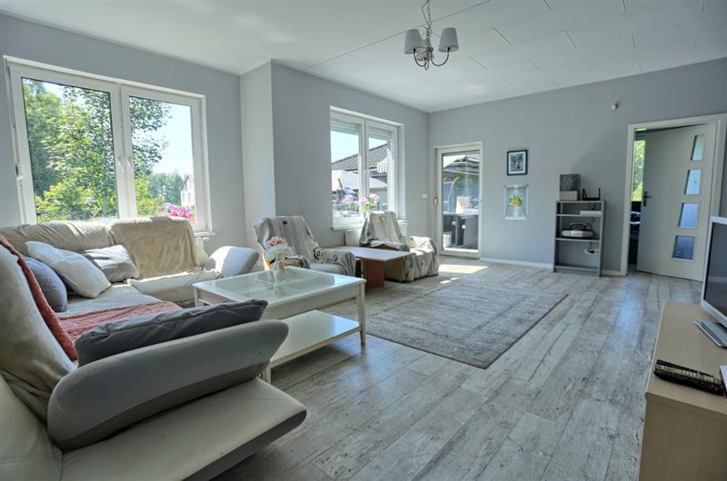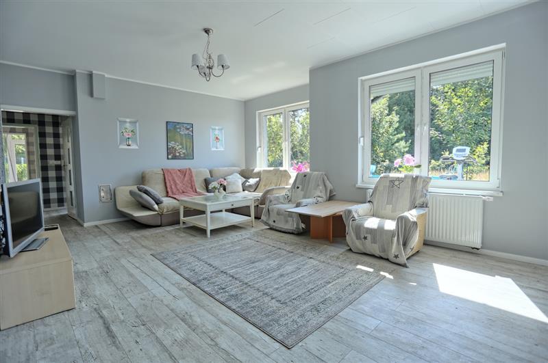 • przestronny salon z wyjściem na taras – idealne miejsce na odpoczynek i spotkania rodzinne,