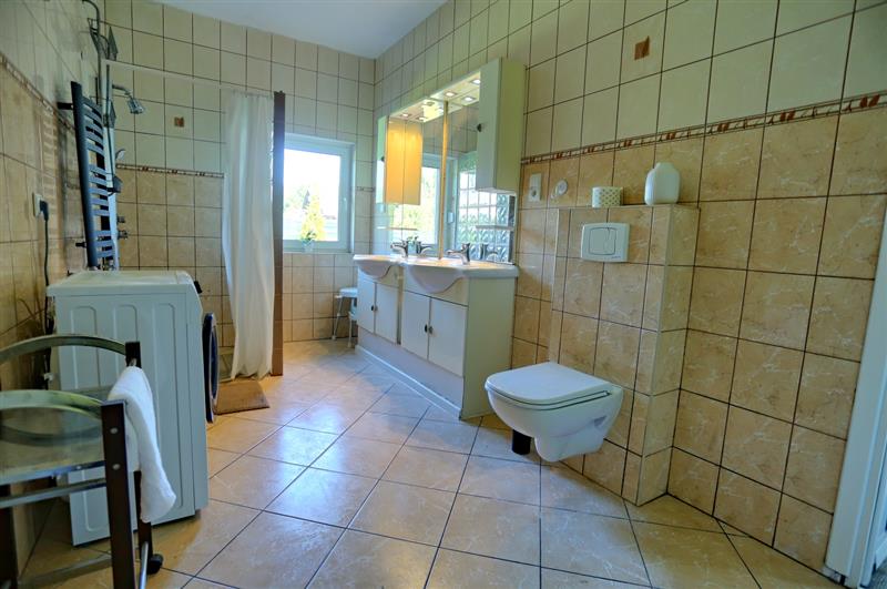 • podłogi: w kuchni i łazienkach – terakota, w pokojach – panele,