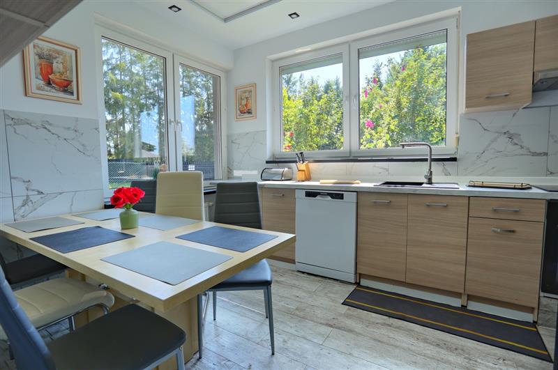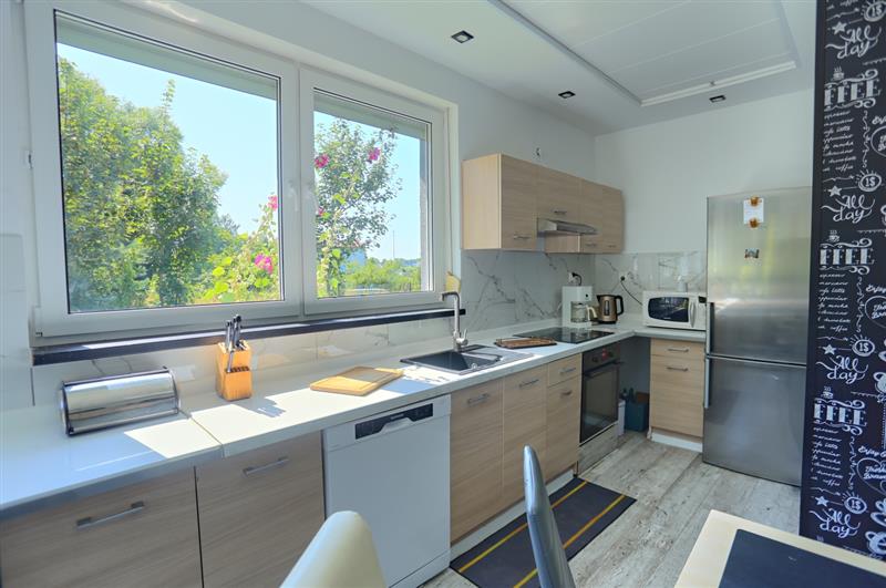 • funkcjonalna kuchnia z wykończeniem w terakocie.