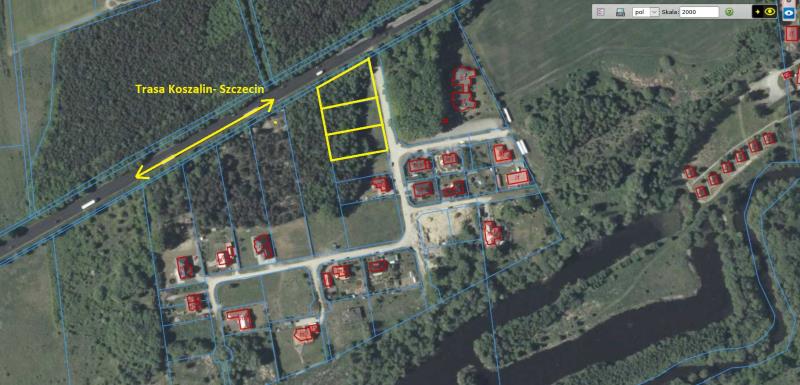 Dojazd do nieruchomości: jadąc trasą A6 Koszalin- Szczecin za stacją benzynową i Motelem Petrico skręcamy w lewo w osiedle domków jednorodzinnych działka znajduje się po prawej stronie.