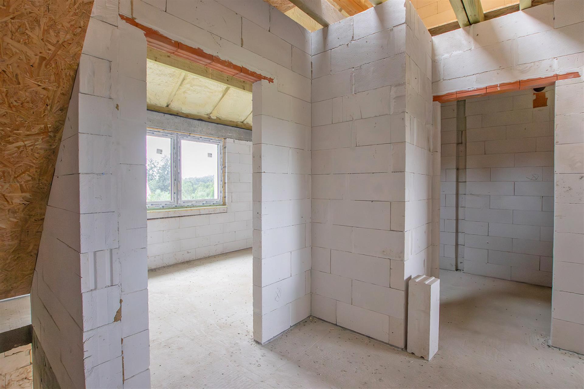 Dom jednorodzinny w trakcie budowy zlokalizowany na terenie nowego osiedla domów jednorodzinnych.