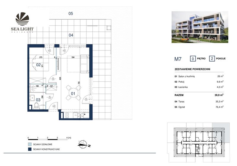 Prezentujemy dwupokojowy  apartament o powierzchni 39,90 mkw z tarasem i ogródkiem położony na parterze.