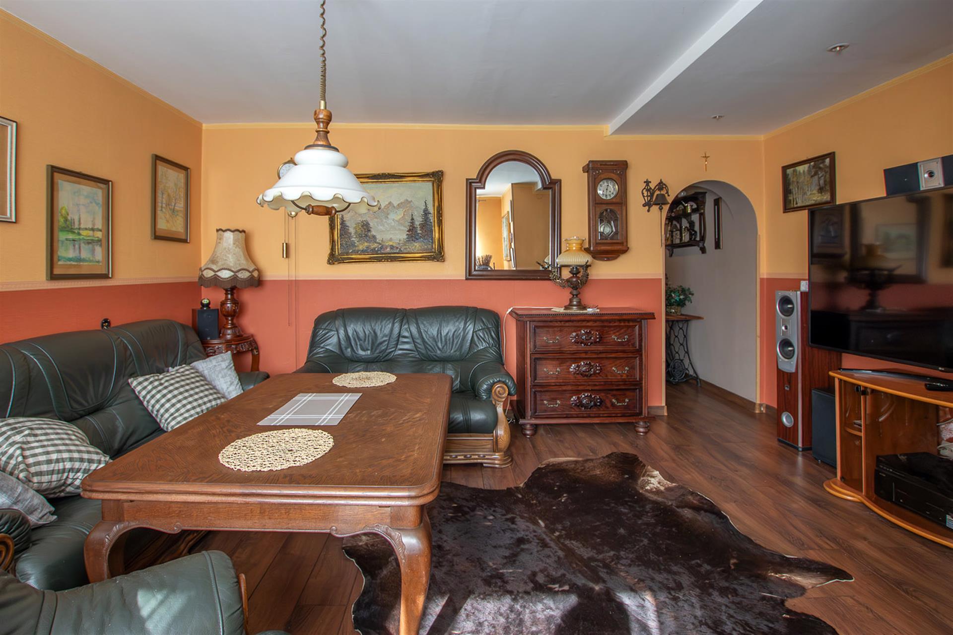 W pokojach panele podłogowe, w kuchni i łazienkach glazura i terakota.