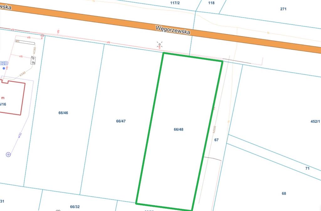 Działka nr 66/48 o powierzchni 1000m2 położona na szybko rozwijającym się osiedlu domów 1-rodzinnych.