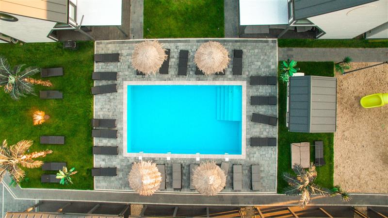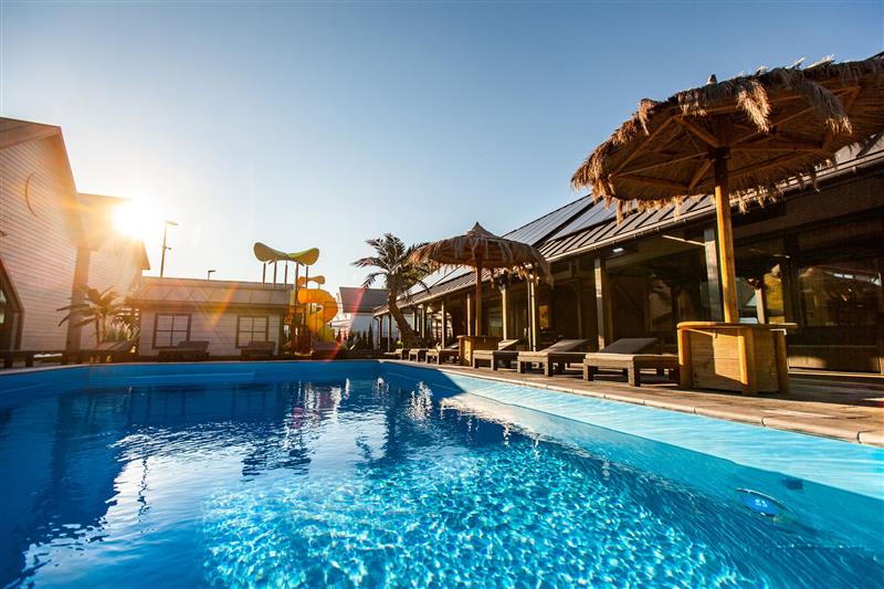 Dla dzieci: plac zabaw, trampolina i oczywiście basen dla gości kompleksu.