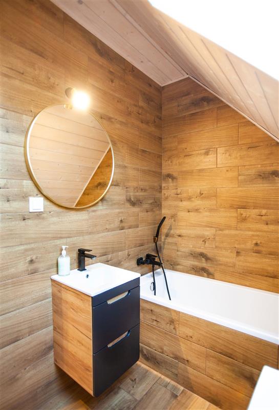 Domki w pełni wyposażone, na parterze do dyspozycji gości salon z aneksem, sypialnia i Wc, schodami wejdziemy na piętro z dwoma sypialniami i łazienką. Każdy domek posiada taras z miejscem z