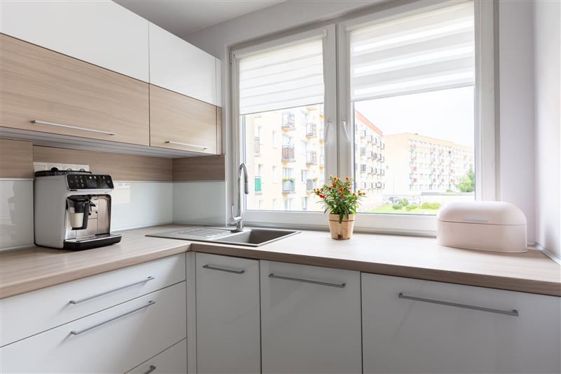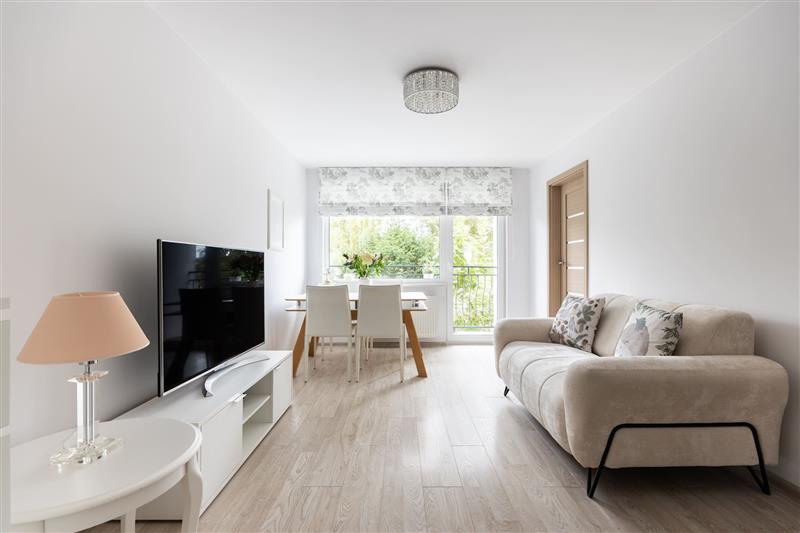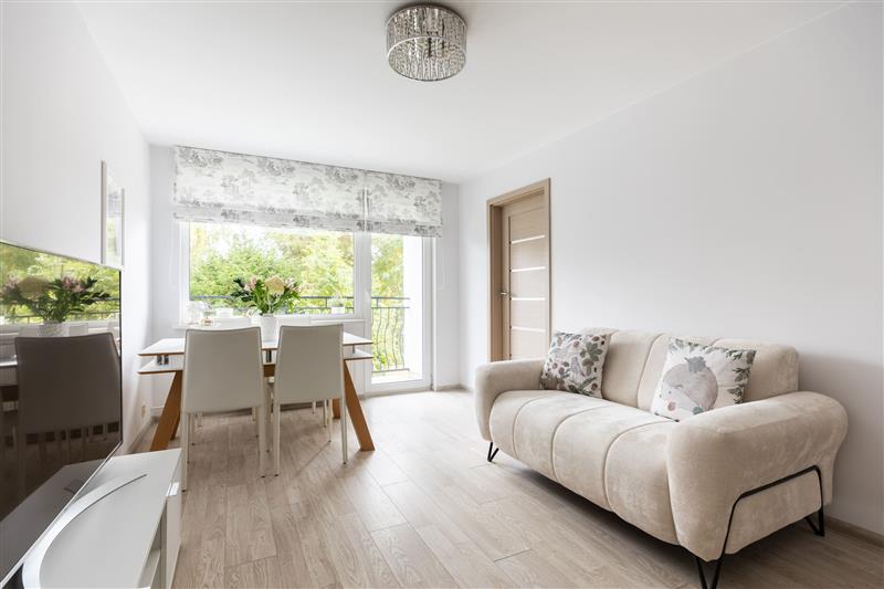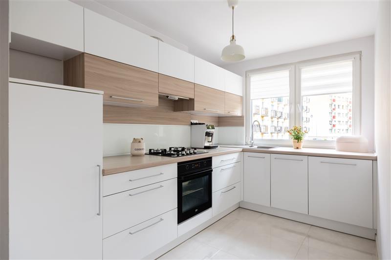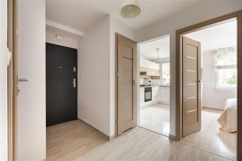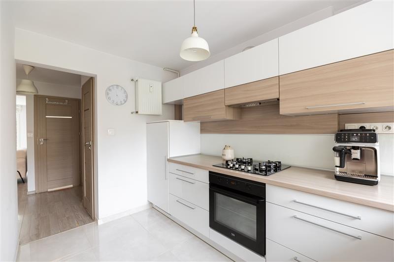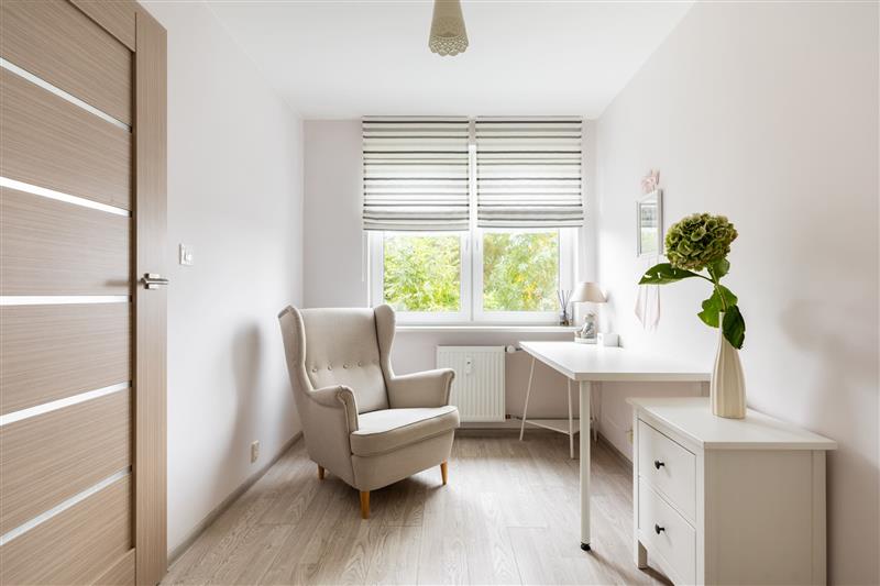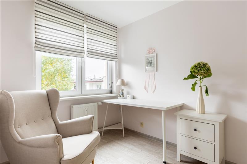 Mieszkanie przeszło gruntowny remont – wymieniono instalacje elektryczną, wodno-kanalizacyjną i gazową, zamontowano nowe okna PCV, które ozdobiono eleganckimi roletami rzymskimi.
