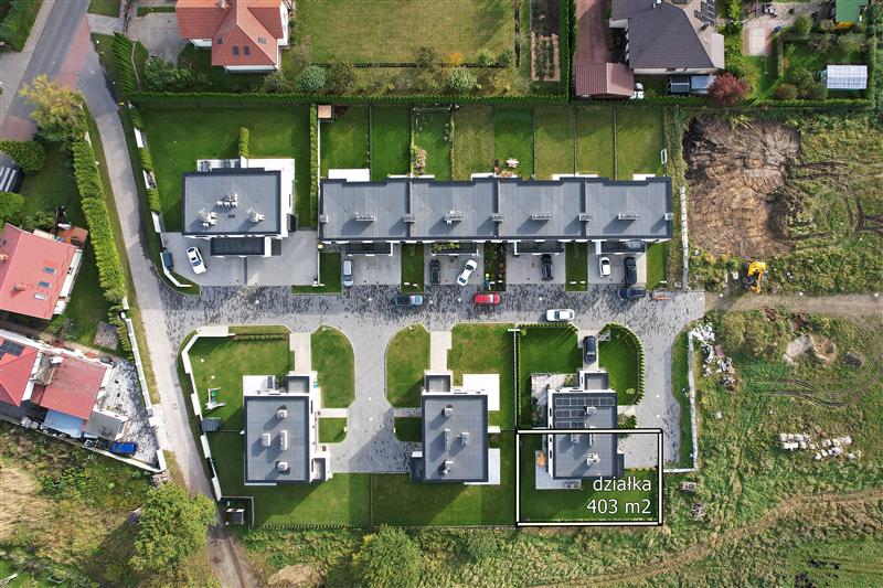 Działka o powierzchni 403 m2 zabezpieczona matą na krety i wyłożona trawą z rolki. Ogród bezobsługowy, ponieważ zainstalowano tu automatyczne nawadnianie i robota koszącego firmy Husqvarna. Na zewnątrz wyprowadzona woda i kanalizacja pod jacuzzi albo basen. Tuż obok wyprowadzono prąd pod automatyczną piwniczkę do zimnych napoi. Przy ogrodzeniu wyprowadzono liczne kontakty pod oświetlenie. Jest tu również bardzo dużo oryginalnych roślin, krzewów i drzewek owocowych. Jednym słowem jest tu wszystko, czego potrzeba do szczęścia.