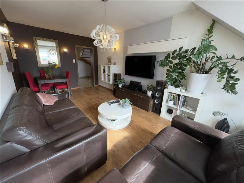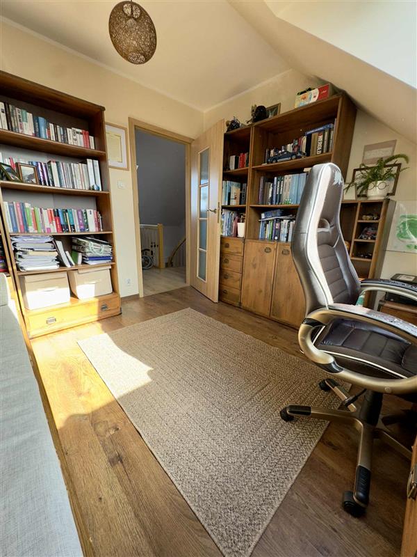 Mieszkanie dwustronne o pow.106,97 m2, na parterze duży przedpokój , od strony południowej salon z balkonem, od północy kuchnia z jadalnią oraz sypialnia, łazienka z prysznicem na końcu korytarza. Na piętro prowadzą drewniane schody, u góry do dyspozycji gabinet, 2 pokoje młodzieżowe oraz łazienka z wanną. W korytarzu wykorzystana przestrzeń na szafę wnękową. W mieszkaniu na podłogach w pokojach panele, w przedpokoju terakota, w kuchni meble kuchenne na wymiar w cenie mieszkania oraz sprzęty AGD (płyta indukcyjna bosch, piekarnik parowy, okap, zmywarka ).Reszta wyposażenia do uzgodnienia, szafy w zabudowie w 2 pokojach. Łazienka na dole świeżo po remoncie. Brak gazu w budynku. Czynsz do wspólnoty 1215 zł ( zal. na wodę, centralne ogrzewanie, fundusz remontowy) ciepłe mieszkanie, zwroty z tytułu ogrzewania. Do mieszkania możliwość dokupienia garażu znajdującego się w hali garażowej -1, winda zjeżdża do poziomu -1. Garaż dodatkowo płatny w cenie 85.000 zł lub możliwość najmu ,a później ewentualnie kupna.