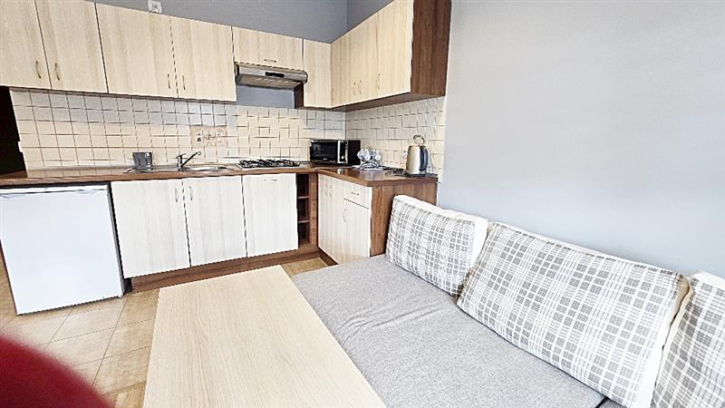 W pokoju łóżko sypialniane i kanapa narożnikowa co pozwala na wynajem rodzinie. Wszystko zostaje w cenie lokalu.