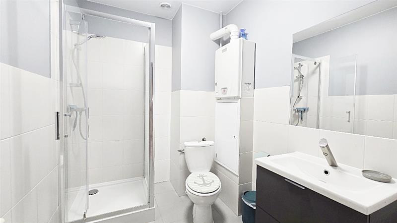 Łazienka: bojler elektryczny, kabina prysznicowa, wc.