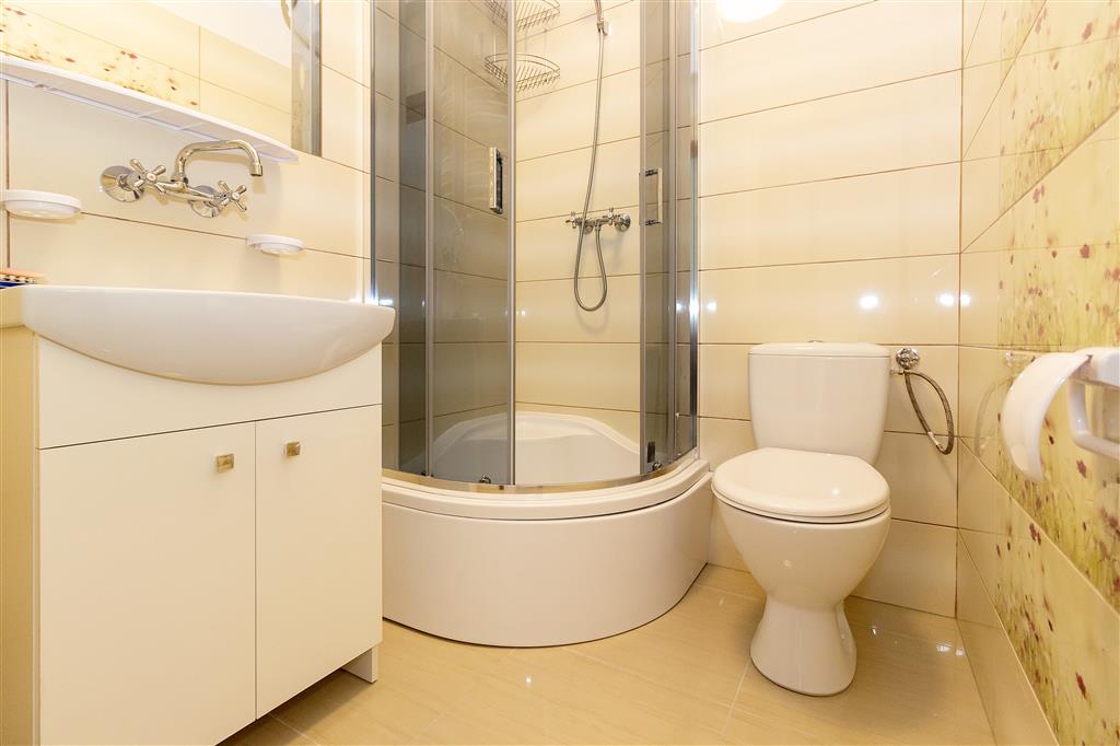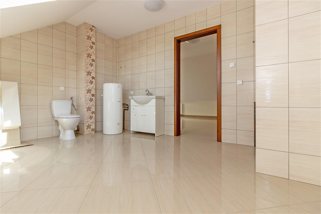 Budynek dwukondygnacyjny z 2019r. o łącznej powierzchni 240 m2. Na parterze znajduje się przestronny hall, który prowadzi do 3 apartamentów oraz pokoju z aneksem kuchennym i łazienką oraz kotłownia - pomieszczenie gospodarcze, którym znajduje się kocioł gazowy wraz z zasobnikiem na wodę. Na poddaszu znajduje się duża, otwarta przestrzeń umożliwiająca zaaranżowanie na mieszkanie, miejsce wypoczynkowe, biuro, itp. oraz łazienka. Budynek ogrzewany jest za pomocą kotła gazowego dwufunkcyjnego, co czyni go obiektem całorocznym. Dodatkowo w hallu znajduje się kominek, który posiada nadmuch ciepłego powietrza na część pomieszczeń.