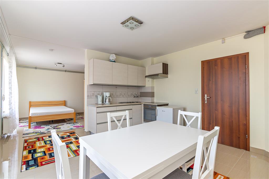 Parterowy budynek z 2015r o łącznej powierzchni 130 m2, w którym mieszczą się: jednopokojowy apartament i trzypokojowy apartament - każdy z łazienką i odrębną kuchnią oraz garaż. Każdy apartament posiada w salonie piec typu koza.