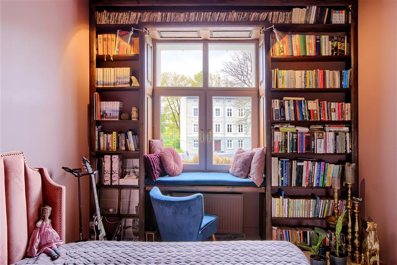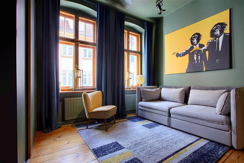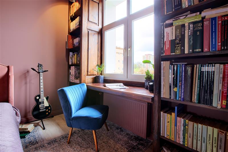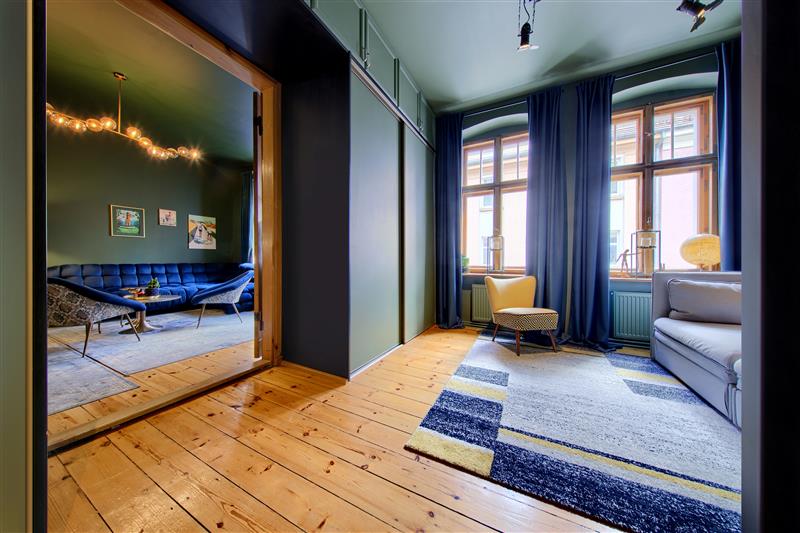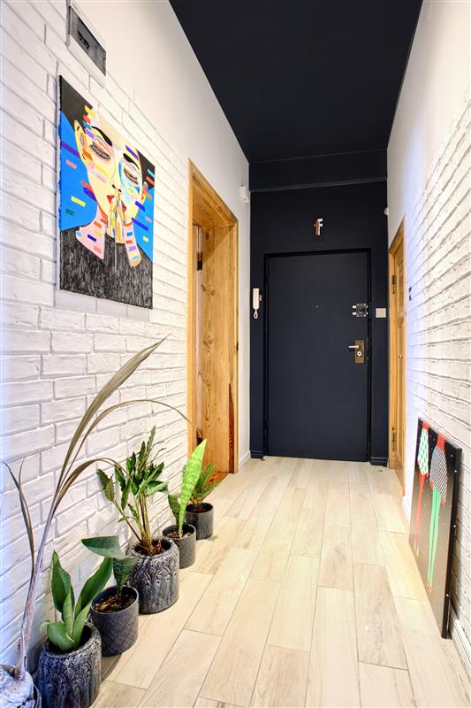 W mieszkaniu zachowano oryginalną stolarkę drzwiową i drewniane okna, które podkreślają charakter kamienicy.