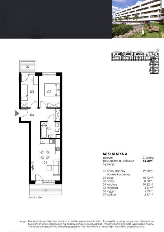 Szczegóły mieszkania (lokal M15, klatka A, II piętro):