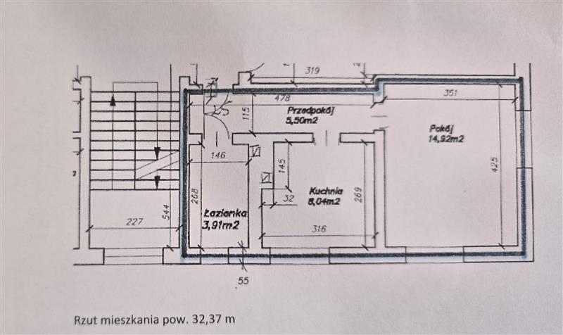 Oferujemy do sprzedaży mieszkanie 1 pokojowe położone na I piętrze w budynku dwupiętrowym przy ul. Łużyckiej.
