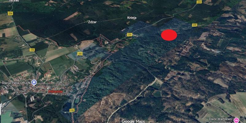 Oferujemy do sprzedaży działkę położoną 1.2 km na północ od Polanowa w woj. Zachodniopomorskim.