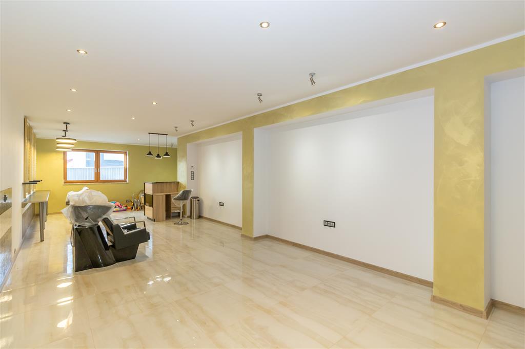Lokal usytuowany jest na parterze i posiada przypisane 3 miejsca postojowe. Składa się z dużej sali z recepcją i częścią socjalną na końcu pomieszczenia oraz łazienki z wc.