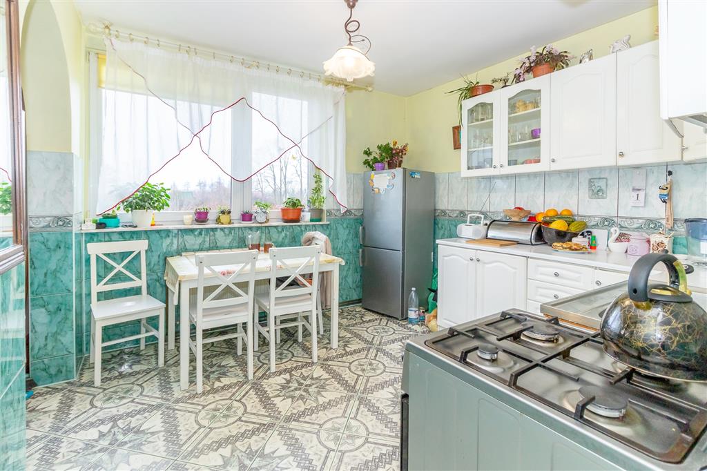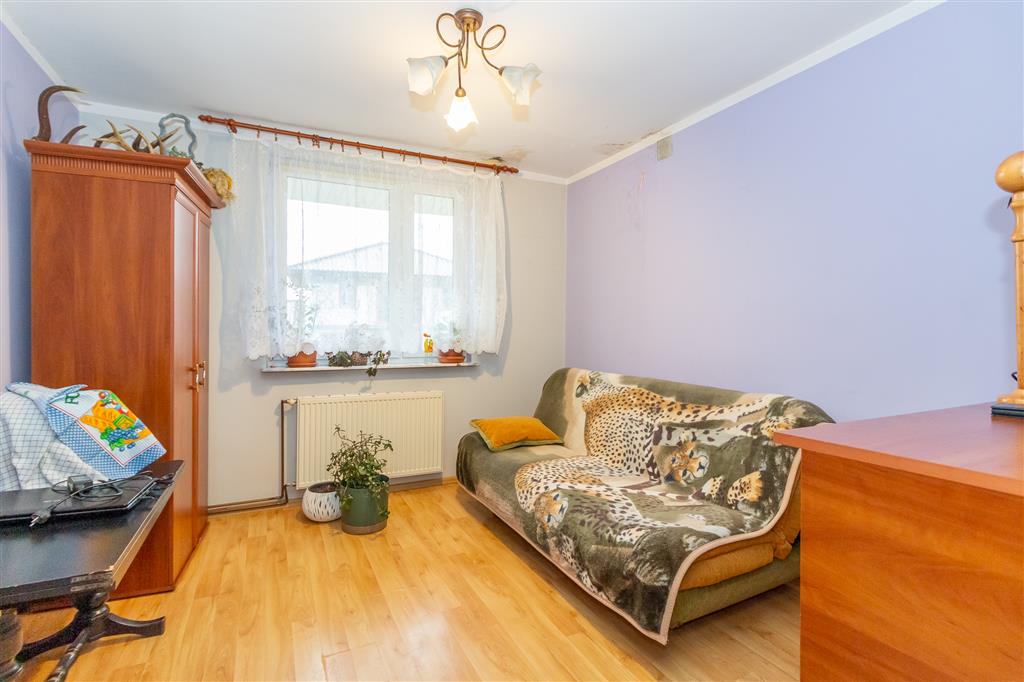 Dom składa się z salonu, 3 pokoi, kuchni, łazienki, przedpokoju i kotłowni. Wyjście na ogród możliwe z jednego z pokoi i kotłowni.