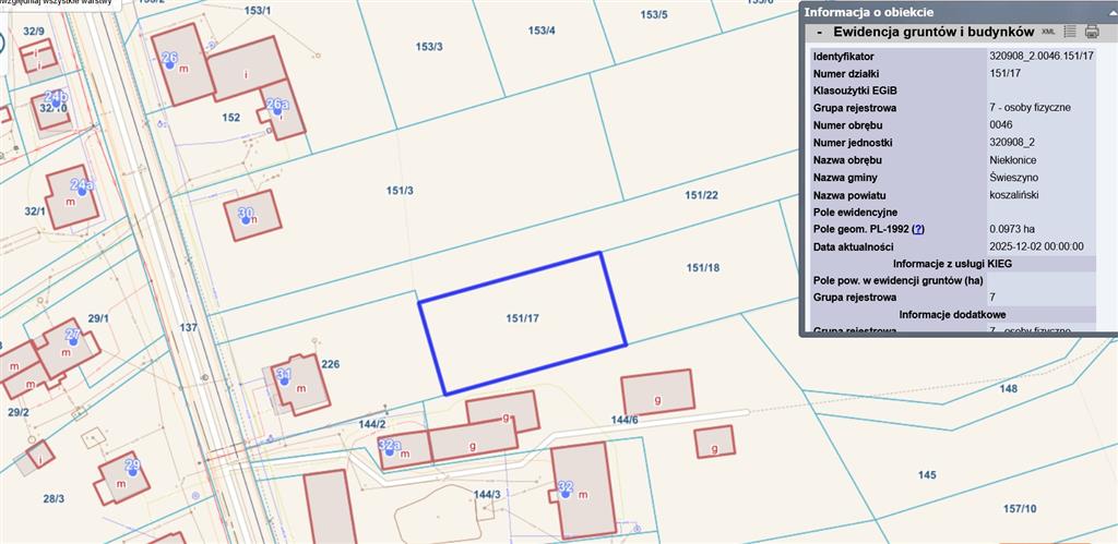Oferta przedstawia częściowo ogrodzoną działkę nr 151/17 o powierzchni 974m2 pod budowę domu mieszkalnego jednorodzinnego z poddaszem użytkowym.
