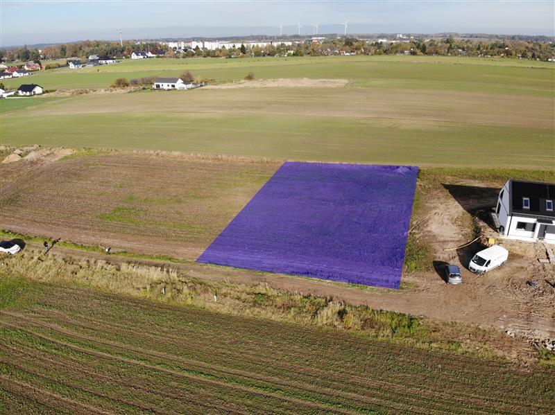 Działka ma kształt prostokątny (ok. 30 x 43 m), jest lekko nachylona, co zapewnia ciekawy widok z przyszłego domu.