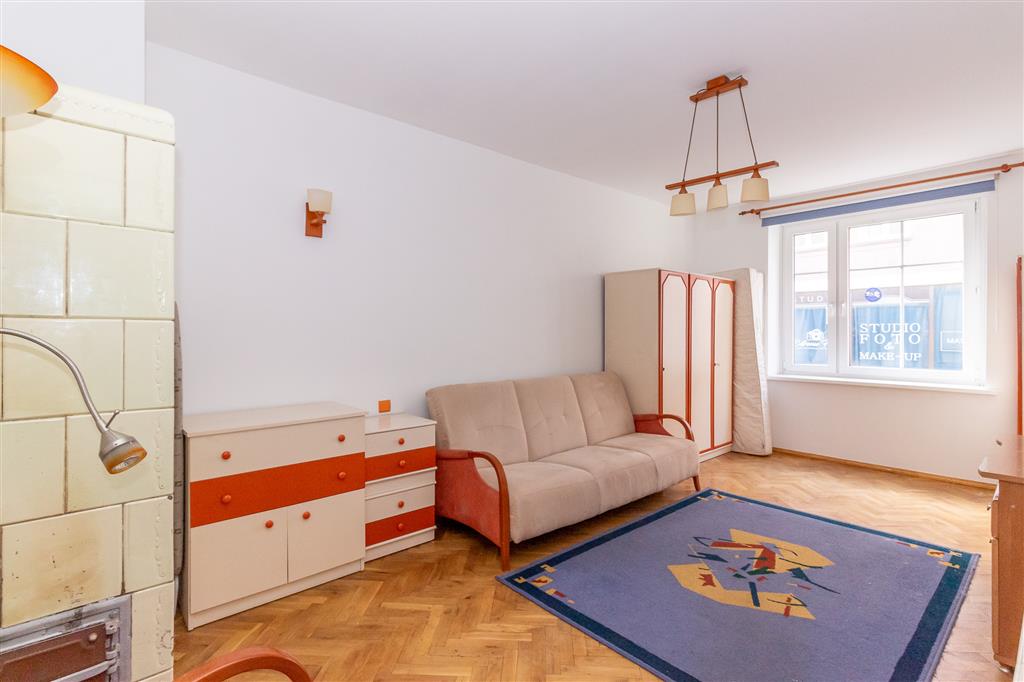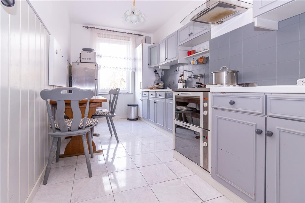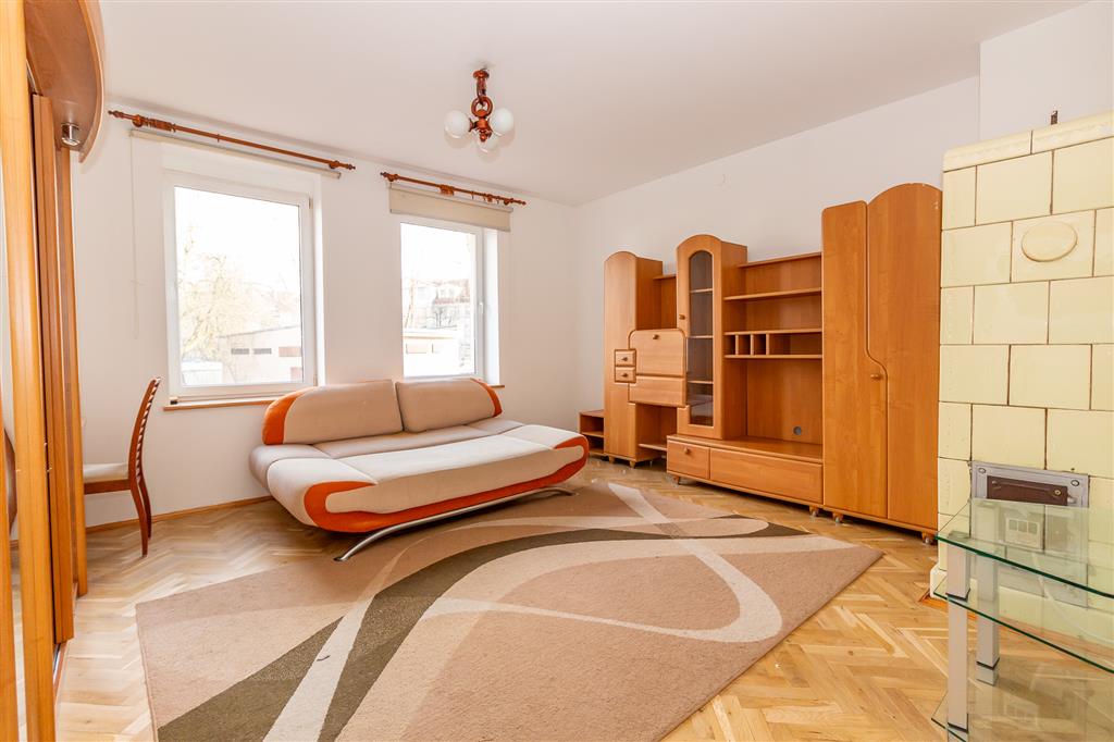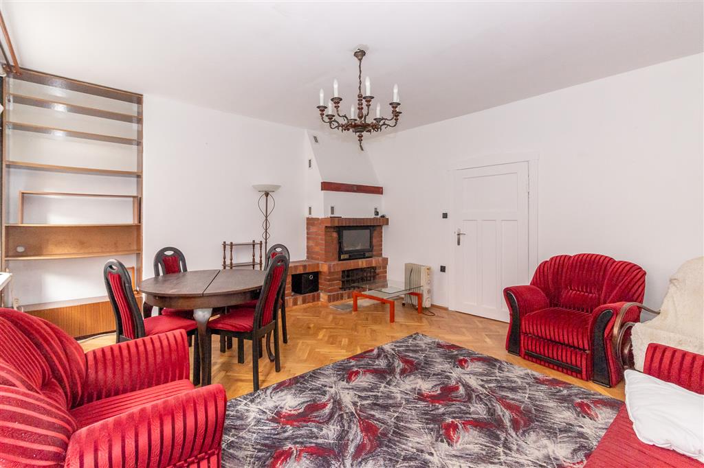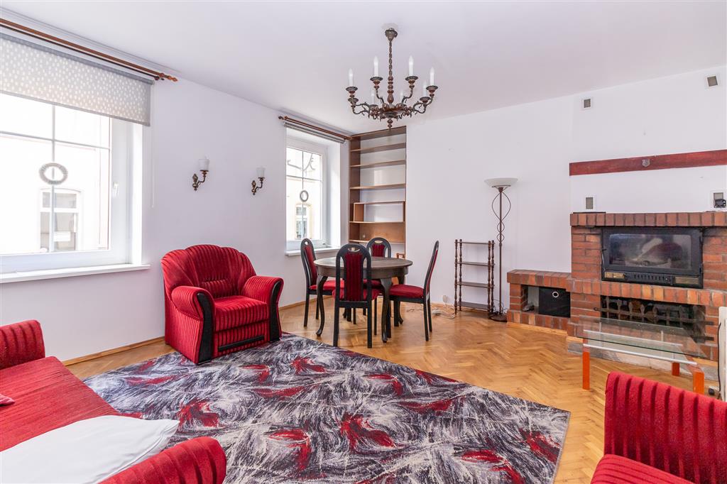 Składa się z przestronnego salonuz kominkiem, 2 pokoi z piecami kaflowymi, kuchni z oknem, łazienki z sauną i dużego przedpokoju z szafą w zabudowie. W cenie mieszkania pozostaje stała zabudowa kuchenna wraz ze sprzętem AGD oraz szafa w zabudowie w przedpokoju.