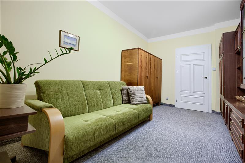 • w mniejszym pokoju: kanapa oraz meblościanka