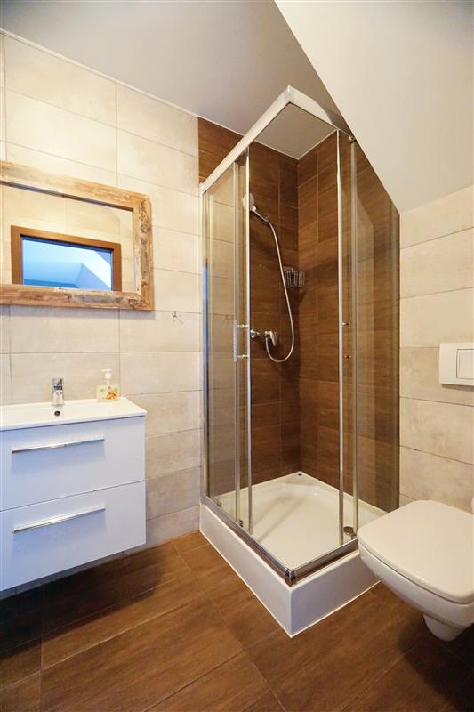 W obiekcie znajduje się 7 niezależnych apartamentów, z których każdy wyposażony jest w prywatną łazienkę, co zapewnia komfort i samodzielność gości. Dodatkowo do dyspozycji jest ogólnodostępna kuchnia, parking dla gości oraz zewnętrzna strefa wypoczynkowa z miejscem do grillowania.