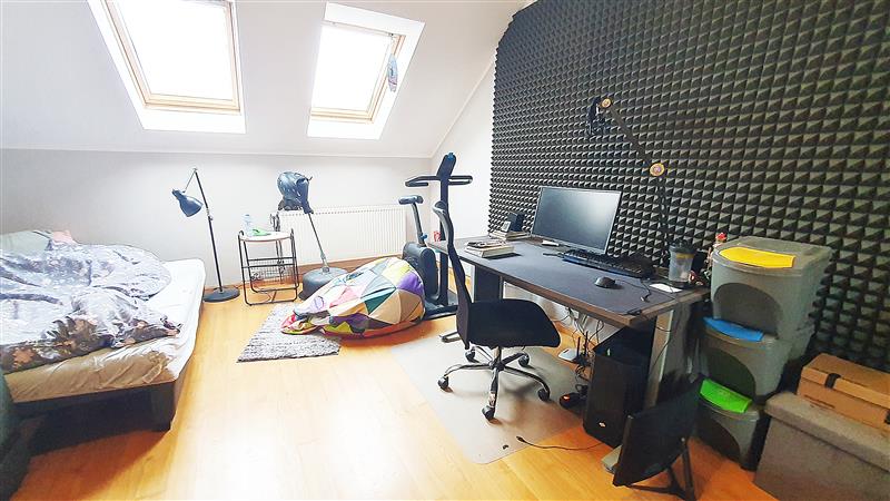 Poddasze - 3 pokoje, dwie łazienki, kuchnia, hall.