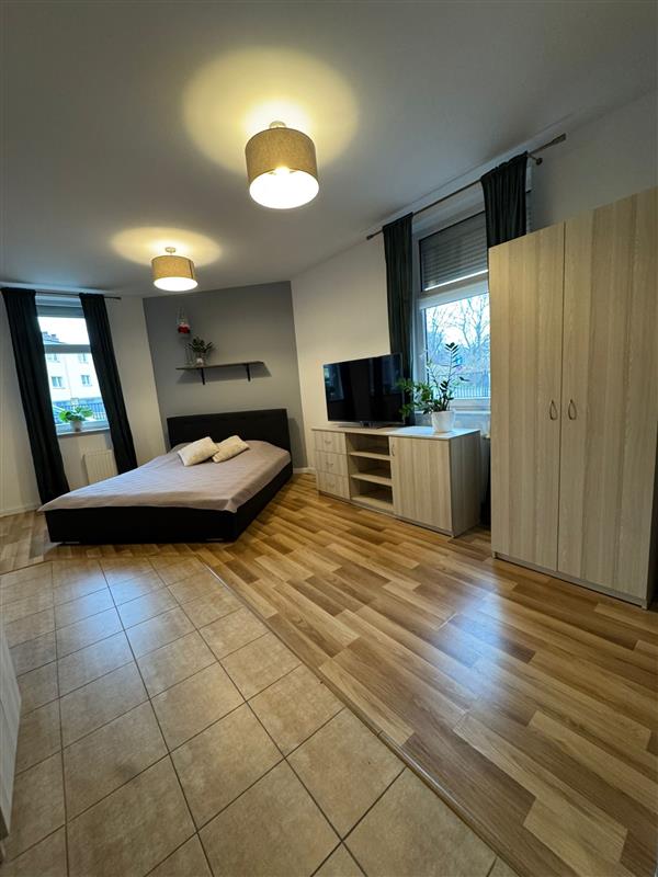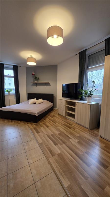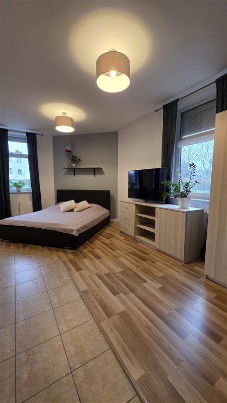 W pokoju łóżko sypialniane i kanapa narożnikowa co pozwala na wynajem rodzinie. Wszystko zostaje w cenie lokalu.