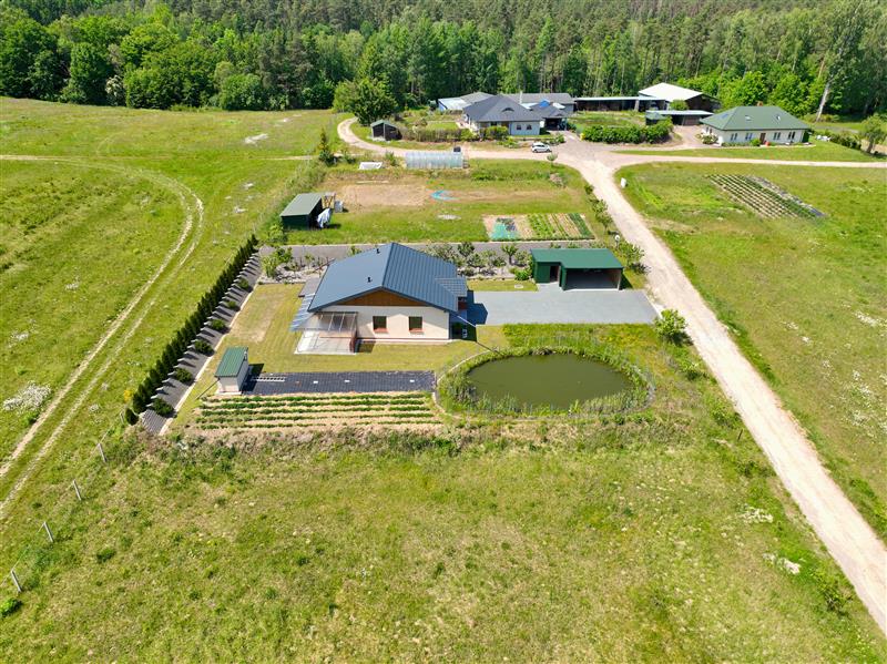• dziaÅ‚ka piÄ™knie zagospodarowana – oczko wodne, liczne nasadzenia, w tym krzewy i drzewa owocowe,