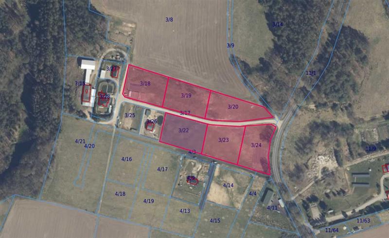 Posiadamy w ofercie kompleks 6 działek  o powierzchni od 3000m2 do 3047m2 z możliwością podziału na mniejsze powierzchnie.